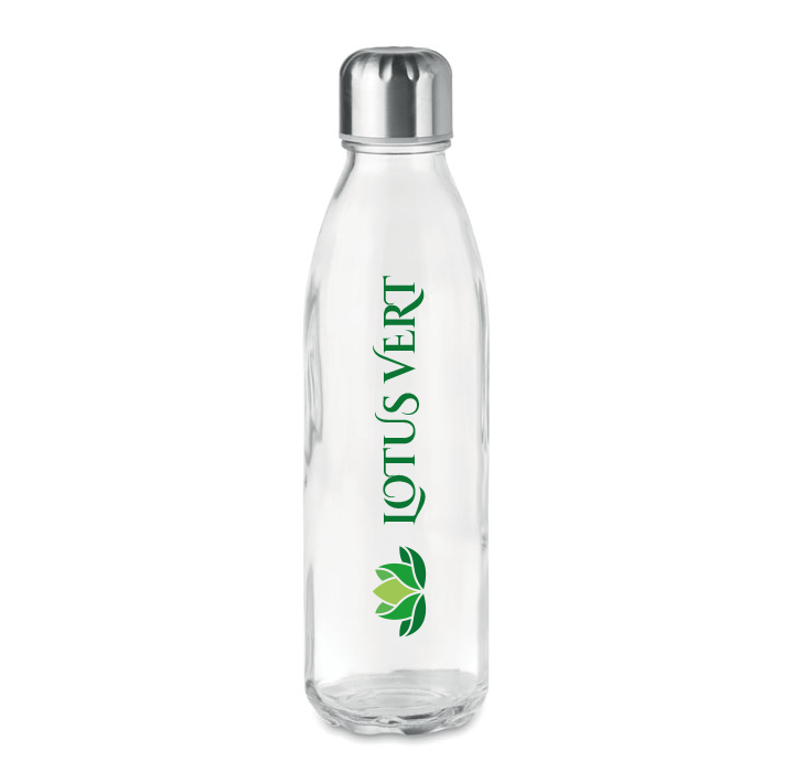 Bouteille en verre ASPEN 650 ml avec bouchon en acier inoxydable.